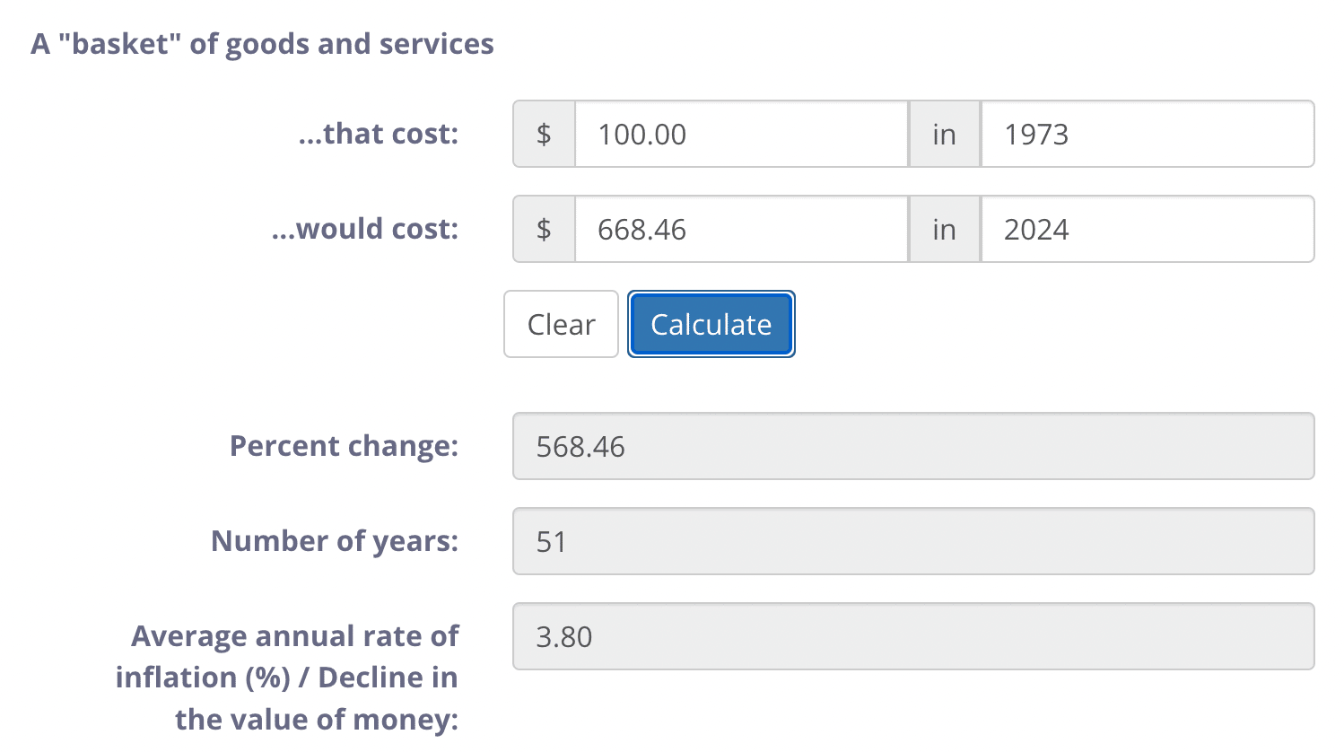 Check out the Bank of Canada's own calculator. They label the last box as "Decline in the value of money".